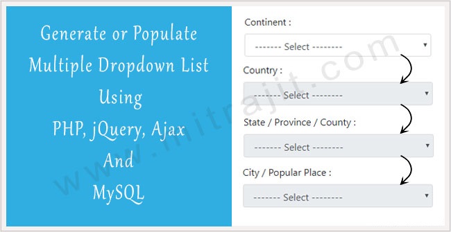 Some readers often asking me how to generate or populate more than one dropdown list or multiple select boxes using Ajax. So, In this tutorial, I will show you how to generate or populate multiple dropdown lists using Ajax, jQuery, PHP, and MySQL.